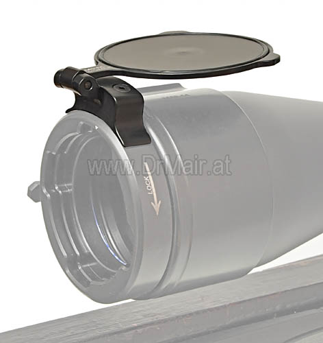 Der Deckel klappt dann einfach auf und zu und kann natürlich auch bei montiertem Vorsatzgerät am Adapter dran bleiben. Nichts was man verlieren oder verlegen kann.
