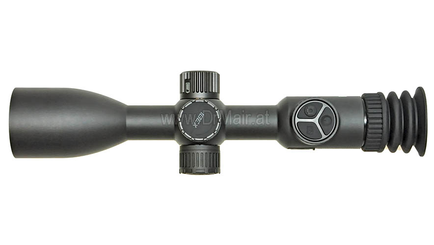 Eine weitere Zieloptik mit schön geschwungenem Design von Thermtec, aber diesmal im unteren Preissegment, ist das IBEX. Mit elegantem Design und sehr guter Verarbeitung besticht es aber vor allem in seiner Funktionalität und elegant integriertem Laser Entfernungsmesser.